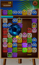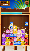 游戏开始后,屏幕上会出现很多随机颜色的小鸟,当然里面还混杂了白色的小鸡,黄色的鸭子,还有猫头鹰,只要是小鸟的四周围的一边没有其他小鸟,那你就能对它做拖动,把它拖动到同色的小鸟上,当凑齐三种颜色后就能消除,提醒哦!在看到小鸟抖动后你能继续把同颜色的移动上去,就能一起消除了。随着游戏进程上方掉落小鸟的速度也会越来越快。游戏中也有很多有趣的道具,有锁的小鸟需要消除两次;燃烧的小鸟消除后会掉下一颗炸弹;闪光的小鸟会把周围的小鸟一同消除;身上冒着电火花的小鸟消除后能造成一个十字的电束。