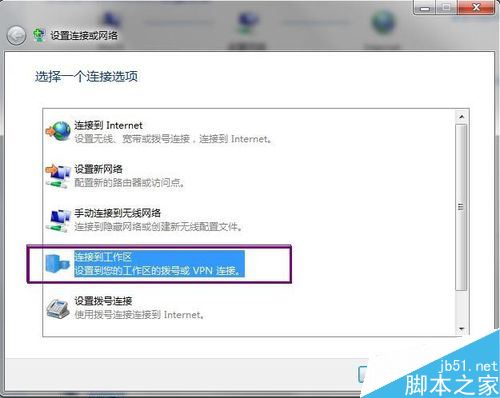 先进入电脑开始-控制面板-网络与共享中心,然后创建新的连接,连接到我的工作区域